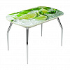 Стол Чикаго СТ 1100(1400)*680*750 фотопечать стекл Ноги 01 гальваника (ОРАНЖЕВЫЕ ЦВЕТЫ НА БЕЛОЙ ДОСКЕ цвет БЛ)